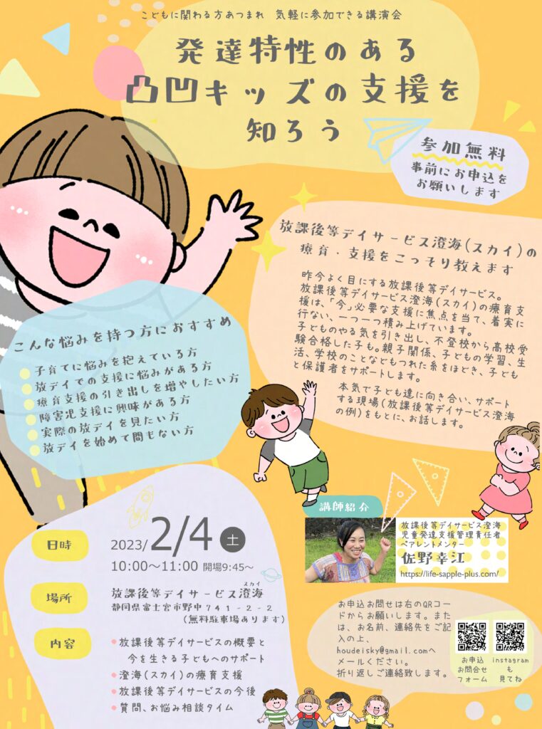 【講演会開催!】「発達特性のある凸凹キッズの支援を知ろう」